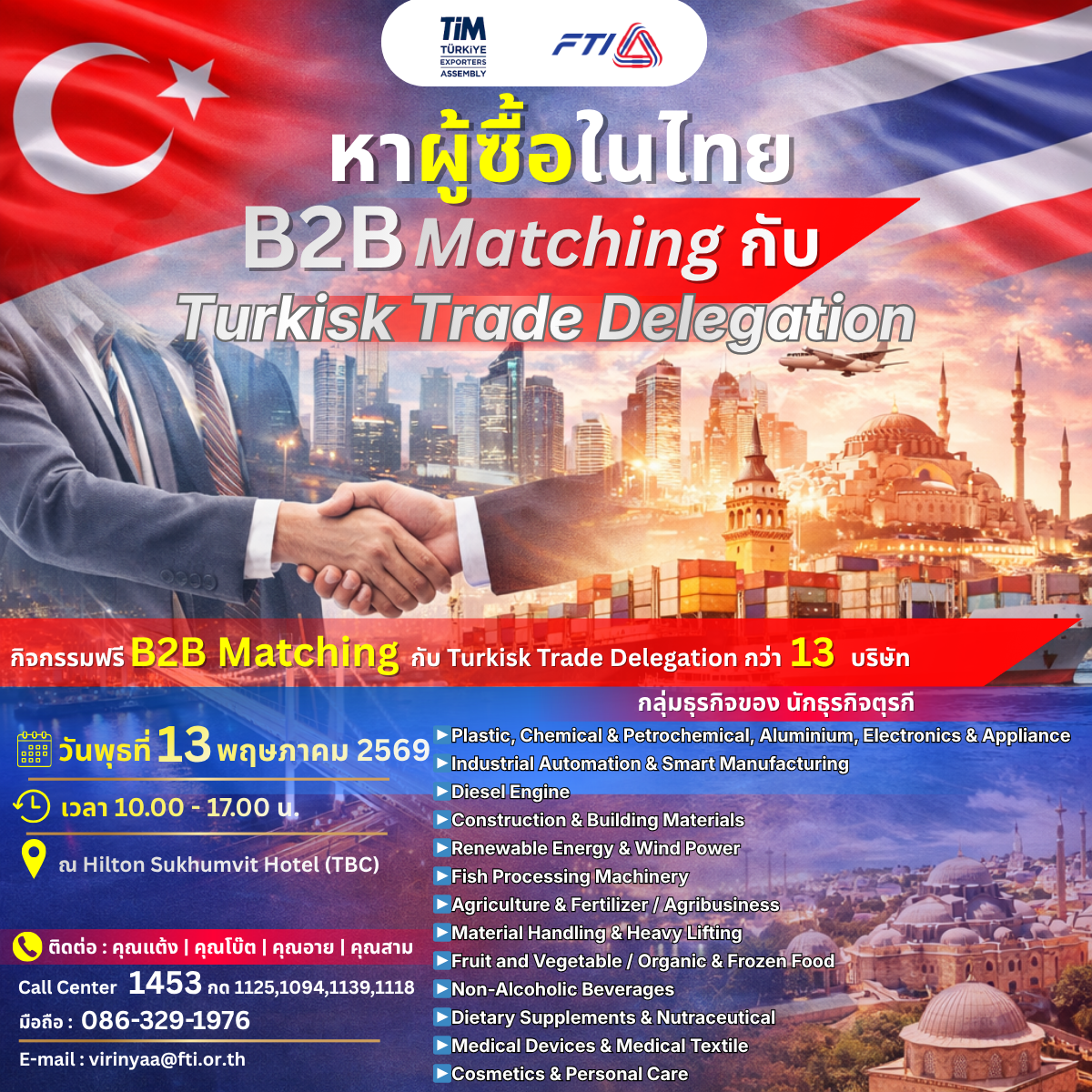 กิจกรรมฟรี B2B Matching กับ Turkish Trade Delegation กว่า 13 บริษัท
