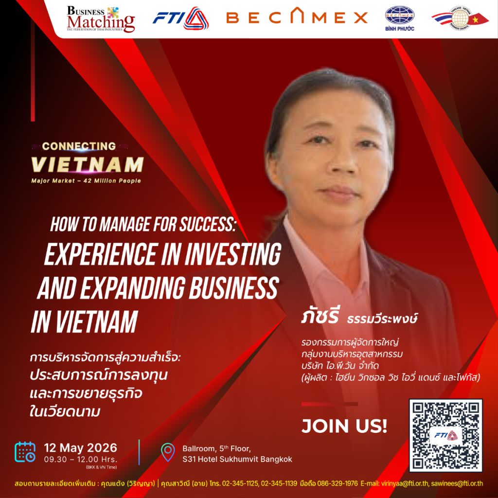 เจาะลึกโอกาสขยายโรงงานและการลงทุนในพื้นที่ยุทธศาสตร์ พร้อมรับฟังประสบการณ์จริงจากนักลงทุนไทยที่ประสบความสำเร็จ